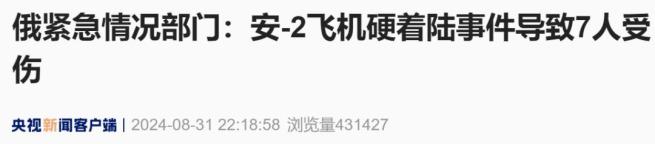 当地时间8月31日,据俄罗斯紧急情况部门通报,安-2飞机硬着陆事件导致7人受伤,其中包括3名未成年人。