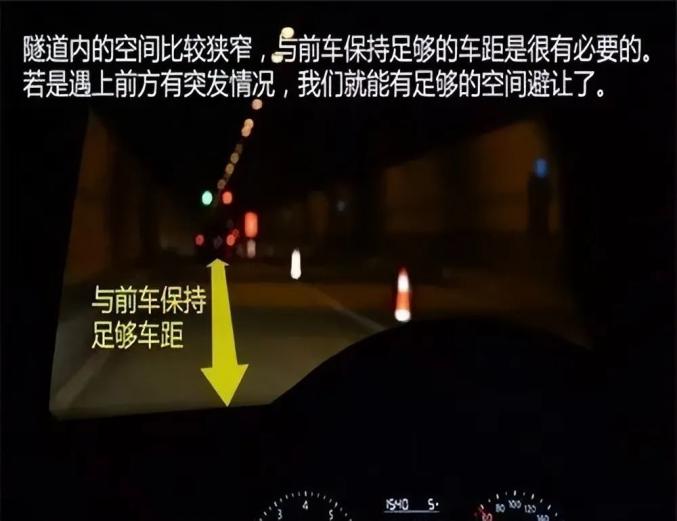 由于进出隧道时光线差别很大,视线会出现短暂的致盲,因此保持足够的安全车距,才能避免车辆在隧道内发生碰撞。