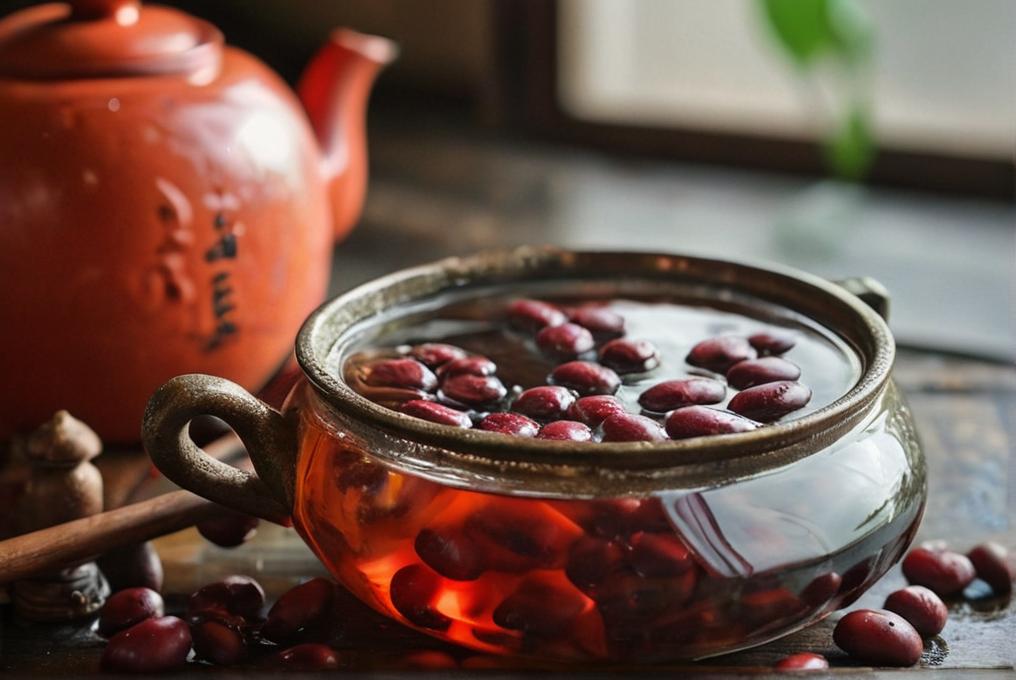 做法:赤小豆、莲子提前浸泡,与百合一同煮至软烂,加入冰糖调味。