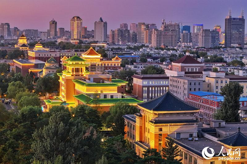 长春新民大街沿线历史建筑被点亮。(资料照片)人民网记者 李洋摄