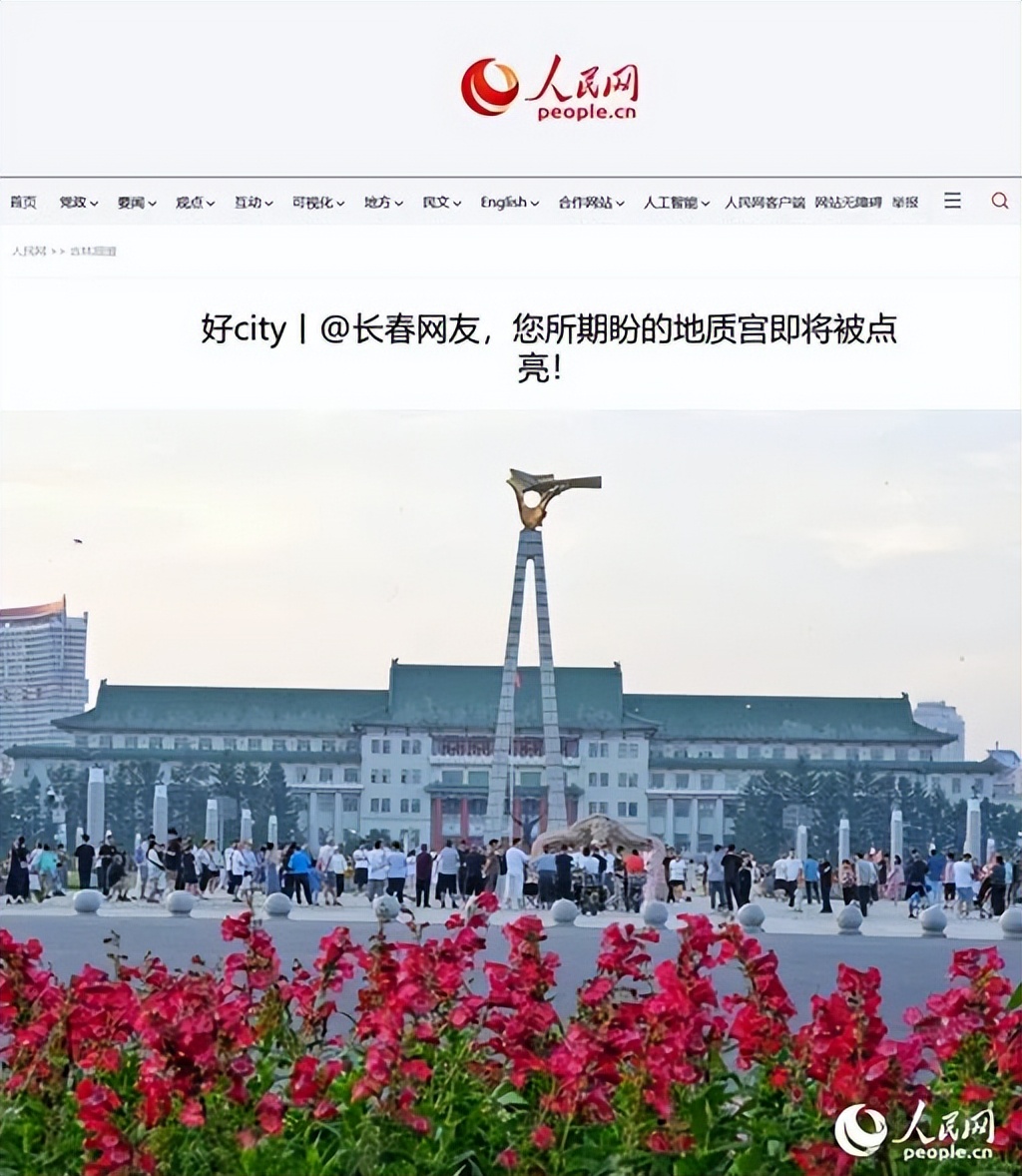 人民网推出《好city|@长春网友,您所期盼的地质宫即将被点亮!》,报道日前长春网友在人民网“领导留言板”上留言,期盼城市地标地质宫被点亮,让城市的夜更美。长春市立即对网友的建议回复表示,网友所关注的亮化问题已被纳入此次改造工程的整体规划与考虑范畴,将使之成为市民游客city walk的首选地。